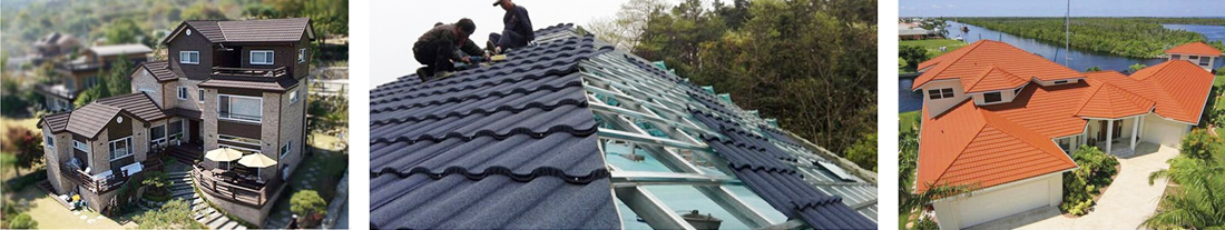 彩石金屬瓦適用于各類坡屋頂建筑的屋面鋪裝和各類建筑的局部裝飾,特別是適用于別墅、中高檔住宅、大型商場圖書館博物館和學校醫院政府機關和企事業單位辦公樓,也非常適用于平改坡和舊屋面翻新。